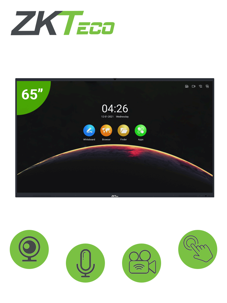 La pantalla digital interactiva ZK- IWB65B nos trae una solución para reuniones virtuales y/o presentaciones interactivas, cuenta con una cámara integrada de 13MP y una matriz de 6 micrófonos con una distancia de captura de hasta 8 metros que nos brinda una excelente experiencia de audio y video clara en las videoconferencias, con sus múltiples puntos táctiles nos permite una gran interacción para escribir o dibujar de manera simultánea utilizando las plumas ópticas, los dedos de la mano o ambos al mismo tiempo.